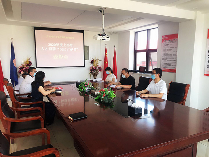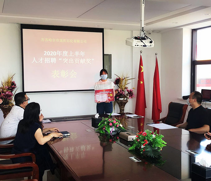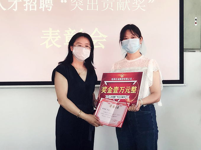 7月2日,哈、齐公司分别召开了2020年上半年人才招聘“突出贡献奖” 表彰会。哈公司副总经理陈慧宇向陆妍颁发了证书和奖金,齐市公司副总经理王诗赤向崔婉婷颁发了证书和奖金。