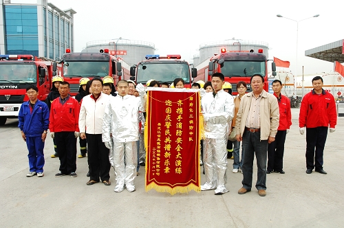 二00九年九月二十三日龙庆分公司龙德油库举办了“迎国庆、保安全 、促和谐消防安全大演练”。