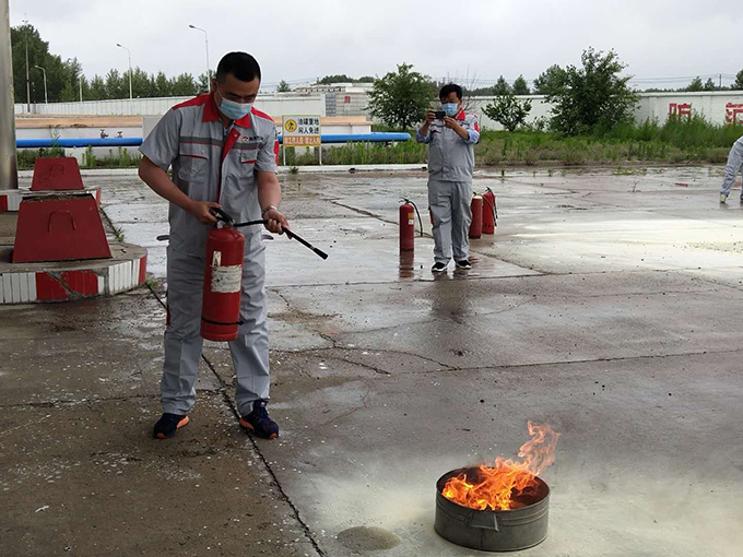 6月22日,龙江油库举行消防演练,龙江县铁路工作人员和齐市公司10余人参加了此次活动。在活动中,龙江油库保安员王军向公司员工讲解了灭火器的使用方法,部分员工进行了灭火演练。